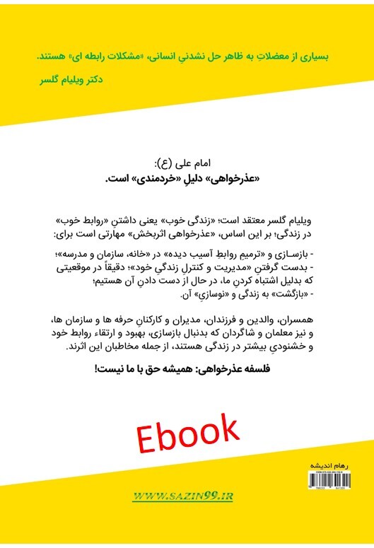 نام کتاب: عذرخواهی اثربخش بر اساس تئوری انتخاب دکتر ویلیام گلسر